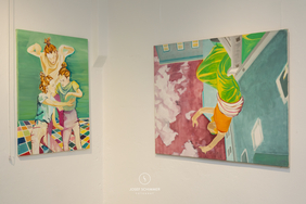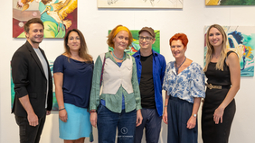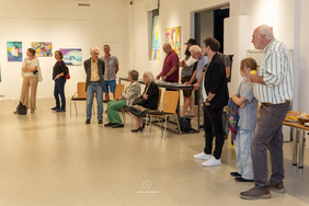 Er las als Laudatio einen Brief der bekannten Philosophin Dr.Karoline Feyertag vor und gab eine witzige Anekdote aus der gemeinsamen Studentenzeit zum Besten. Darin berichtete er, wie sich die Vorliebe von Ronja Vogl für kräftige Farben im Laufe der Jahre von Rot-, Orange-, Gelbtönen hin zu Blau - und Grüntönen gewandelt hatte. Im Anschluss der Eröffnung waren die Besucherinnen und Besucher eingeladen, sich mit der Künstlerin auszutauschen.
