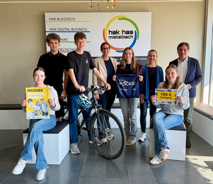 Seit Frühlingsbeginn heißt es an der BHAK/BHAS Mistelbach wieder: Rauf aufs Rad! Die Schule nimmt auch heuer an der Aktion BikeRider von Klimabündnis Niederösterreich teil. Das von Radland Niederösterreich finanzierte Projekt ist Teil der Kampagne „NÖ radelt“ und will speziell Jugendliche für das Radfahren begeistern – mit Erfolg: NÖ-weit sammelten im Vorjahr 1.200 Schülerinnen und Schüler aus 25 Schulen knapp 200.000 Radkilometer bei BikeRider.