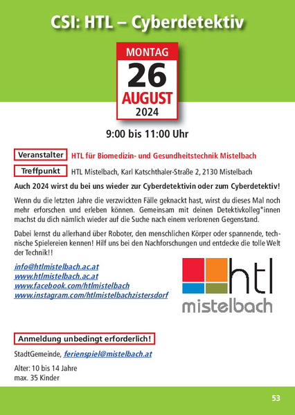 - CSI: HTL Cyberdetektiv am 26. August