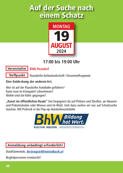 - Auf der Suche nach einem Schatz am 19. August