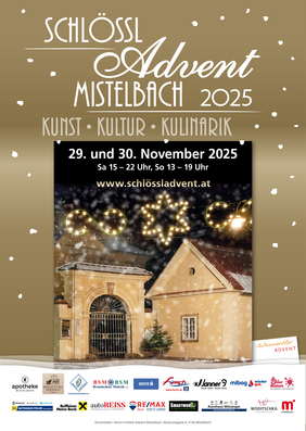 Kunst, Kultur und Kulinarik stehen auch heuer wieder im Mittelpunkt, wenn am 1. Adventwochenende am Samstag, 29. und Sonntag, 30. November, traditionsgemäß der SchlösslAdvent im Barockschlössl in Mistelbach – heuer „nur“ an zwei Tagen – stattfindet. Der beliebte SchlösslAdvent garantiert einmal mehr ein umfangreiches, vielfältiges Programm für Alt und Jung. Etliche Hütten bieten sowohl im Innenhof als auch vor dem Barockschlössl Punsch, Glühwein, Langos und andere kulinarische Köstlichkeiten an. Im Caféhaus werden alle Gäste an beiden Tagen mit Kaffee und köstlichen Mehlspeisen sowie im Presshaus mit Mistelbacher Qualitätsweinen, Schnäpsen und Aufstrichbroten verwöhnt. Besucherinnen und Besucher können aus einem vielfältigen Angebot der vielen Verkaufsstände wählen, sich kulinarisch verwöhnen lassen oder einfach die vorweihnachtliche Atmosphäre beim SchlösslAdvent genießen.