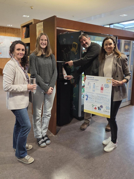 Initiatorin Mag. Sabine Taudes, Ernährungswissenschaftlerin und engagierte Lehrerin an der HTL, verfolgte jedoch ein weiteres Ziel: die Installation eines eigenen, leitungsgebundenen Trinkwasserspenders. Ermöglicht wurde die Umsetzung v.a. durch den Elternverein, der dankenswerterweise die gesamten Kosten übernahm.