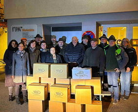 Ein Teil der Sponsorinnen und Sponsoren traf sich kurz vor Weihnachten zur offiziellen Übergabe beim Kolpinghaus ein. Die mitgebrachten und gelieferten Säfte stammen allesamt von regionalen Betrieben und Erzeugern. Urlaubs- und krankheitsbedingt haben zahlreiche Freunde den Betrag in Vorfeld an das Poysdorfer Weingut Lukas Heger überwiesen. Dieser wird dankenswerterweise frischen Traubensaft nach Bedarf nachliefern und das Leergeschirr abholen.