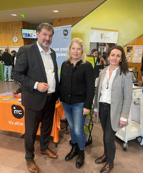 Auch Absolventinnen und Absolventen der Schule waren unter den Ausstellern, die von ihren persönlichen Werdegängen berichteten und damit besonders authentische Einblicke in den Berufsalltag ermöglichten. Auch Gemeinderätin Iris Sroufek machte sich selbst vor Ort ein Bild über das breite Karriereangebot der Unternehmen für Schülerinnen und Schüler.