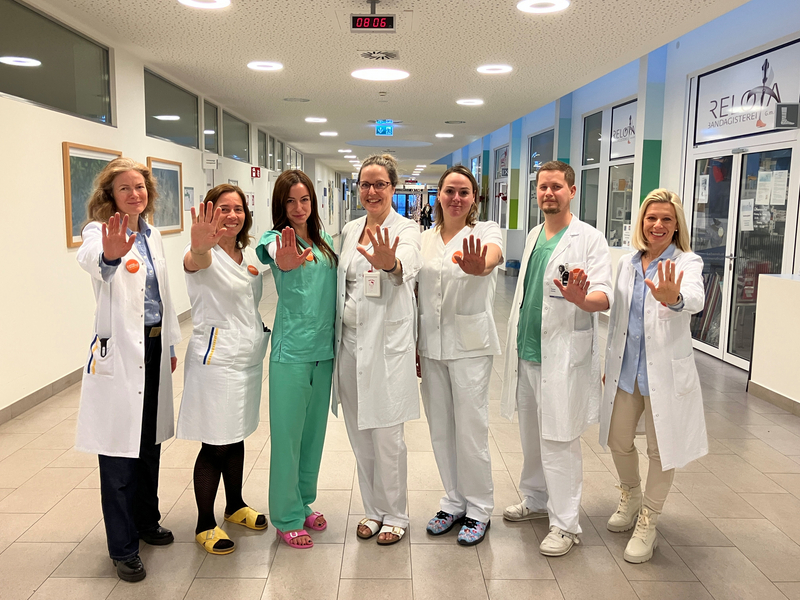 Im Landesklinikum Mistelbach-Gänserndorf gibt es außerdem eine Opferschutzgruppe, die sich aus dafür eigens geschulten Personen aus dem ärztlichen, pflegerischen und klinisch-psychologischen Bereich zusammensetzt. Kliniken sind meist die erste Anlaufstelle für betroffene Frauen, wenn es für sie zu Hause nicht mehr sicher ist. Durch Flyer und Aufkleber macht das Landesklinikum Mistelbach-Gänserndorf darauf aufmerksam, dass die Patientinnen und Patienten hier Schutz und Unterstützung finden. An den 16 Tagen gegen Gewalt haben die Mitarbeiterinnen und Mitarbeiter des Landesklinikums Mistelbach-Gänserndorf zusätzlich die Möglichkeit, mit orangenen Buttons auf ihrer Kleidung ein Zeichen gegen Gewalt zu setzen.