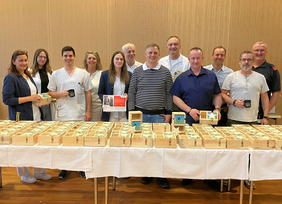 Als Zeichen der Anerkennung überreichte der Betriebsrat allen Mitarbeiterinnen und Mitarbeitern des Landesklinikums einen Schreibtisch-Organizer mit Notizzetteln, angefertigt von der Kolping-Werkstätte in Poysdorf.