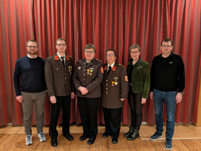 Bürgermeister Erich Stubenvoll, Kommandant-Stellvertreter David Bachmayer, Verwalterin Elisabeth Dietrich, Kommandant Gerhard Aigner, Sicherheitsstadträtin Andrea Hugl und Ortsvorsteher Gemeinderat Ing. Martin Schreibvogel