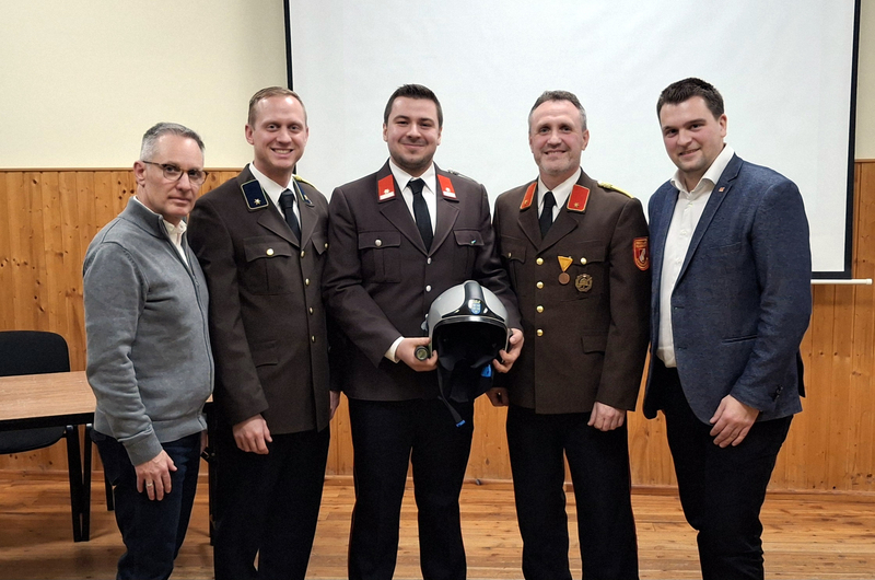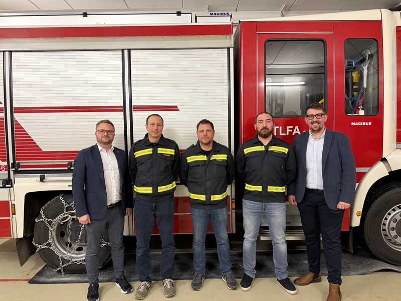 Gemeinderat Robert Netzl, Verwalter Alexander Warosch, Kommandant Jakob Schimmer, Kommandant-Stellvertreter Markus Schimmer und Vizebürgermeister Michael Schamann, MA
