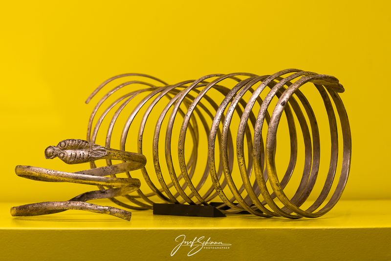 Highlights der Ausstellung sind der Silber-Schatz von Tivissa – darunter Becher, Schalen und Schmuck, Gefäße mit iberischer Inschrift und Ornamenten, Votivstatuetten aus Bronze von Adoranten und Kriegern, Schädel mit eingeschlagenen Nägeln sowie die detailgetreuen Repliken der faszinierenden „Dama de Elche“ und weiterer Frauenbüsten.