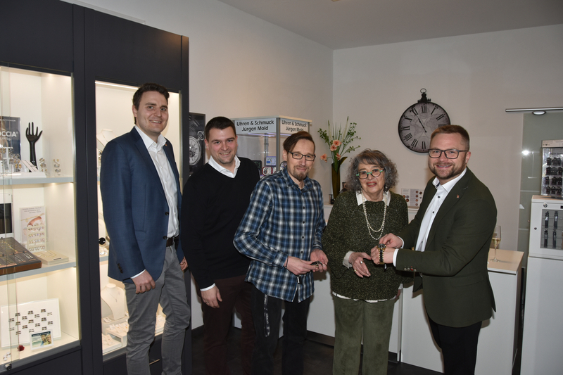 Als gelernter Uhrmacher verfügt Jürgen Mold über eine jahrzehntelange Erfahrung im Juwelierbereich. Nach beruflichen Stationen bei „Young Diamonds“ und bei „One More Time“ hat der 45-Jährige heuer den Sprung in die Selbständigkeit gewagt und sich den Traum vom eigenen Juwelierfachgeschäft in der Mistelbacher Marktgasse erfüllt. Nach der offiziellen Eröffnung am Dienstag, 20. Jänner, lud der gelernte Uhrmacher einen Monat später auch Vertreter aus Politik und Wirtschaft ein, die ihm zur Geschäftseröffnung herzlich gratulierten.