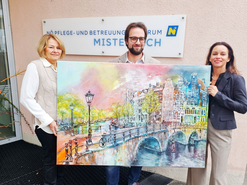 Am Donnerstag, 15. Jänner, wird im NÖ Pflege- und Betreuungszentrum Mistelbach die Vernissage der Künstlerin Susanne Czerny unter dem Titel „Gefühlte Momente“ stattfinden. Das Angebot der vielfältigen Bereicherung des Alltagslebens in den elf Pflege- und Betreuungszentren der Gesundheitsregion Weinviertel wird auf Initiative der Geschäftsführerin der Gesundheit Weinviertel GmbH, Mag. Katja Steininger, BSc kulturell ständig ausgebaut. Auch Bilderausstellungen in den NÖ Pflege- und Betreuungszentren haben sich schon etabliert.