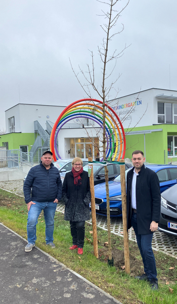 Zum anderen ließ Gemeinderat Benjamin Hymer einen Baum – ebenfalls einen Feldahorn – vor dem NÖ Landeskindergarten „Zaya-Mühlbach“ pflanzen. Die beiden Baumpflanzungen erfolgten Ende November im Beisein von Stadträtin Monika Mayer und Stadtgärtner Markus Lehner.