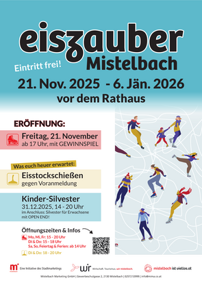 Das beliebte Eislauf-Format im Mistelbacher Zentrum bietet vom 21. November 2025 bis 6. Jänner 2026 bei täglichen Öffnungszeiten GRATIS Eislaufspaß für jung und alt!